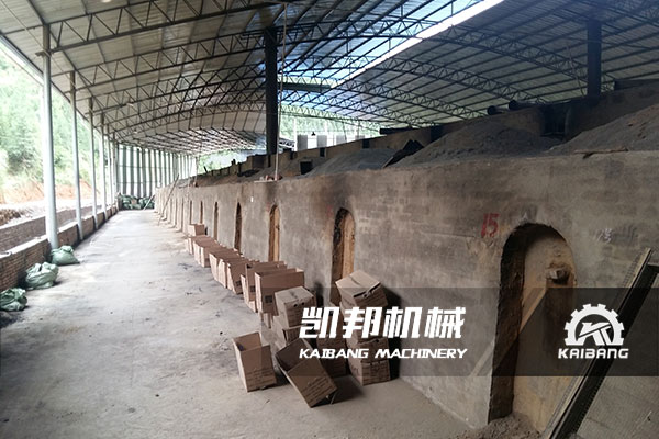 江西日產八噸機制木炭生產線現場。主要原材料為竹屑,炭化方式采用土窯。